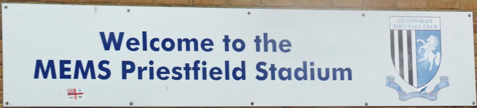 PRIESTFIELD is excellent on 3 sides of the stadium. The 2 biggest and best looking sides are the 2 tiered Medway Stand which has executive boxes in the middle. And the Rainham End, which is a large all seated stand behind one goal. The 2 stands are joined in the corner by a building, which I am not sure what purpose it serves, but it blends in well nonetheless. Along the other side of the pitch is the Gordon Road Stand, another all seated stand, but this time a lot smaller. It looks pretty decent and has good views, as this is where Wycombe fans sat in the LDV Trophy game. It also has an electronic scoreboard on the roof. The one remaining end, the Brian Moore Stand is uncovered seating, basically a Meccano set! Typically the away fans get this, though they do hand out free plastic macs if it rains.