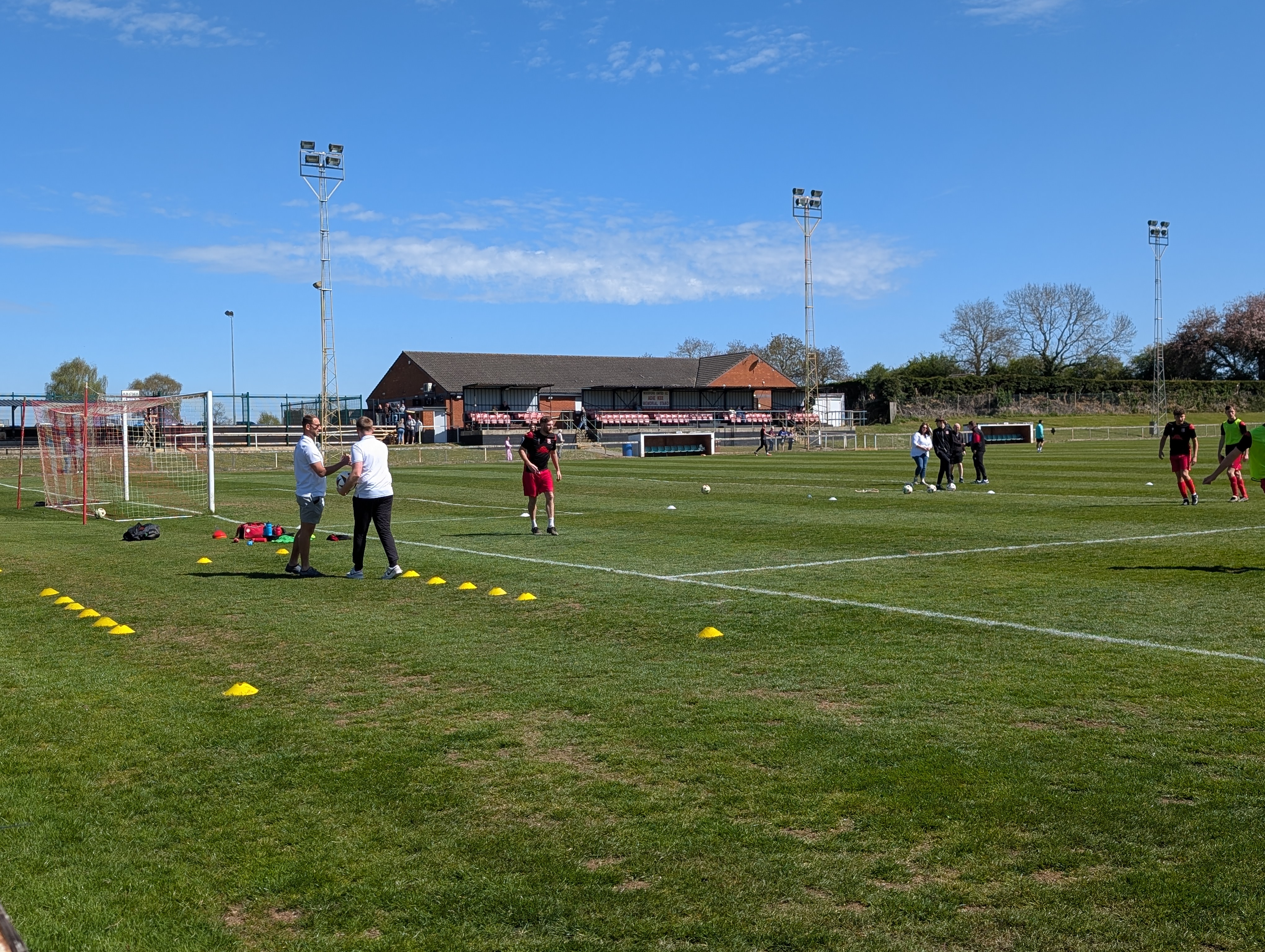 THE GROUNDBYFIELD ROAD is a pretty basic ground, but pretty much the usual standard at this level. There is an 'Arena' metal stand along the side, holding around 150, but this at least is raised, so you get a decent view of the action. The only other covered area is some standing behind one goal, and a small section of covered standing along the side, whilst the rest of the ground is open to the elements. Due to the small crowds, though, there is little danger of you having to stand in the open. The ground is set in the countryside, so quite a nice setting. I didn't see a club shop, but I know that they sell various bits online and in the club bar. The bar itself is pretty good, especially for this level, with big screen TV and a fairly decent selection of drinks. The tea bar is very basic, only doing bacon and sausage rolls, along with drinks