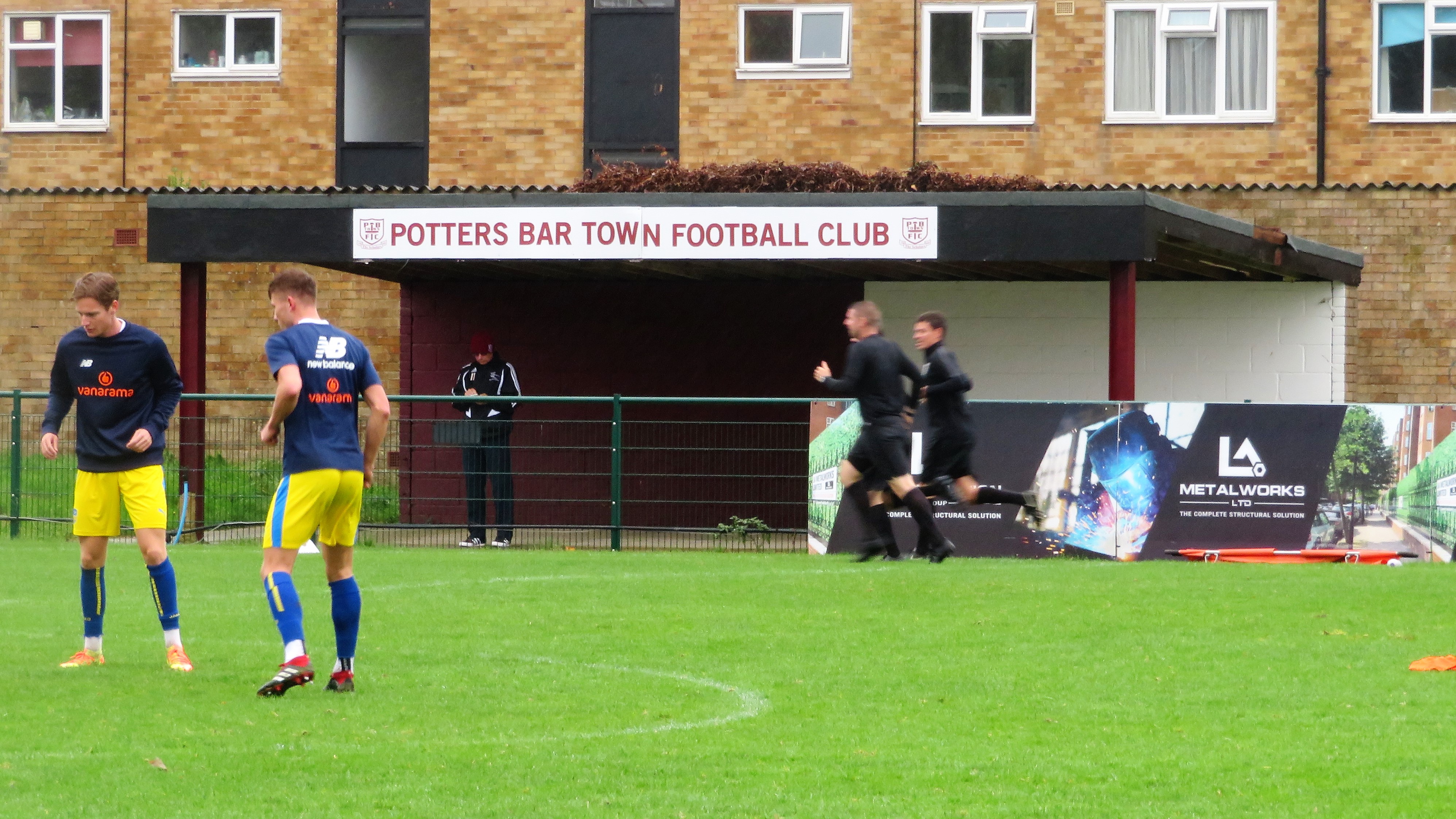 I was working on the day of the game and had a meal lunchtime to save me having to spend too much later on. I left home at 5.45, meeting Anwar in Aylesbury at 6.20 after hitting a bit of traffic. Despite this, we made good progress to Potters Bar arriving at 7.15. I had read about the small amount of parking at the ground and there were already cars dotted around everywhere as the main spaces were full. I still found a space easily enough though. We both went straight into the ground, buying a programme each as per usual. I checked what had been happening on Facebook since I left home before taking some pictures and reading some of the programme. It wasn't the most exciting of grounds but it did its job OK. I found out that one of my Facebook friends, Splodge, was also at the game. He is secretary of Fareham Town FC in the Wessex League and has done over 1300 grounds which makes my total of 317 as of tonight's game look tiny.