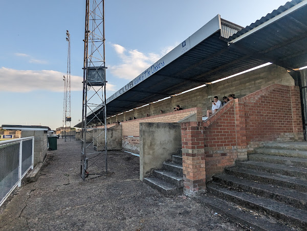 CHADFIELDS is a traditional step 4 ground and one of the few classic ones left at this level. There was a strange old stand on the side that you come in, this probably holds around 200 and is elevated high up, but has pillars blocking your view. Opposite is more cover, probably holding 1000 in a mixture of seating and standing. The two ends are uncovered. The tea bar offers the usual range of stuff, chips being good value at £1, 30p extra with melted cheese. The bar is nice and modern with club photos on the wall. It offers your typical clubhouse range of drinks. There is a parade of shops nearby, should you want more choice.