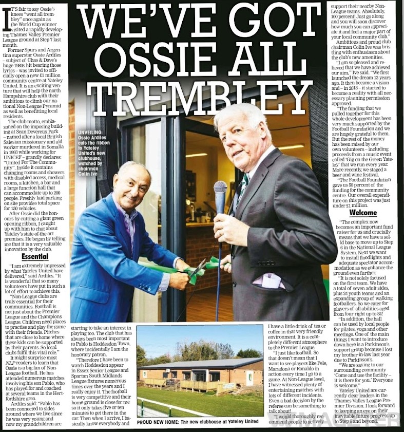 SEAN DEVEREUX PARK is a huge sports complex amongst other things and so there is plenty of parking. It is also quite isolated from what I saw. The facilities at the ground are decent, a smart bar, though nothing special on the cider front. They also do food, but I didn't sample it. A good programme is also available for most games. As for the ground, it is fully railed and there is hard standing on two sides. It is open aside from a stand under construction that will being their seating capacity up to step six standard. Floodlights are due to be put in by October. All in all, a good place to visit and I think they will do themselves proud at a higher level. The club are welcoming and helpful on Twitter for any visitors.